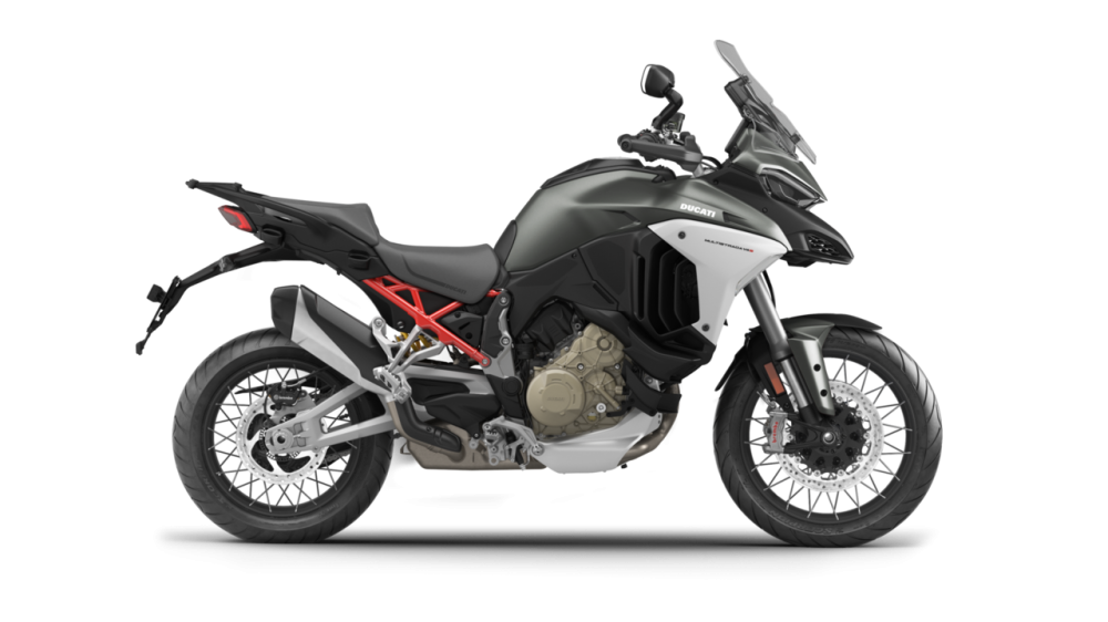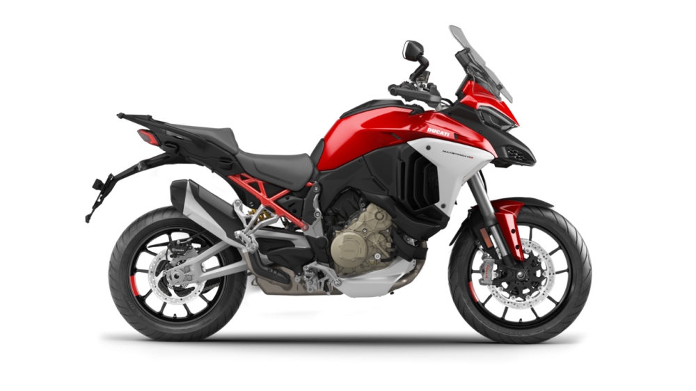 Phiên bản tiêu chuẩn của xe là Ducati Multistrada V4 có dàn áo tiêu chuẩn màu Đỏ cùng bộ vành đen, khung xe là loại khung liền khối bằng nhôm, khung phụ phía sau bằng ống thép. Hệ thống treo của xe mang thương hiệu Marzocchi chỉnh cơ.