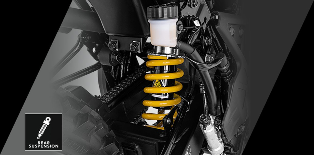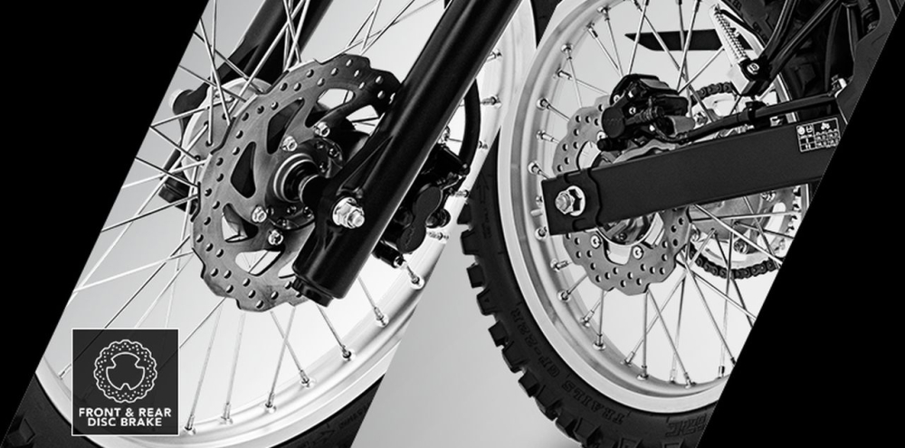 Cùng với đó là bộ vành nan bằng nhôm kích thước 21 inch ở trước và 18 inch ở sau, đi kèm là phanh đĩa tiêu chuẩn có kích thước tương ứng 240 mm và 220 mm. Bình xăng xe có dung tích 8,1 lít, đảm bảo cho xe vận hành thoải mái khoảng 200 km trước khi phải đổ xăng. Các trang bị tiêu chuẩn khác trên xe còn có đèn pha, đèn hậu và đèn xinhan halogen, bảng đồng hồ kỹ thuật số LCD đơn sắc và đèn cảnh báo harzard.
