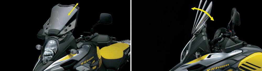 Kính chắn gió của xe có thể chỉnh được bốn chiều gần xa cao thấp, tùy vào yêu cầu của người lái, qua đó làm giảm tối thiểu áp lực gió lên người lái khi di chuyển ở tốc độ cao