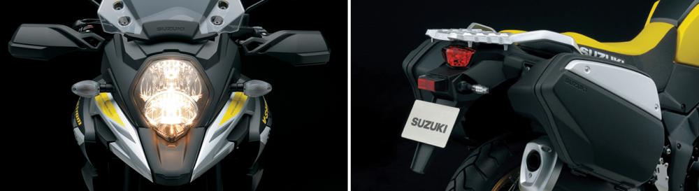 Là một chiếc adventure nên Suzuki V-Strom 1000 không thể thiếu hai thùng chứa đồ lớn gá hai bên yên sau của xe. Ngoài ra xe còn có giá bằng nhôm phía sau yên để người dùng có thể lắp thêm thùng thứ ba nếu muốn.