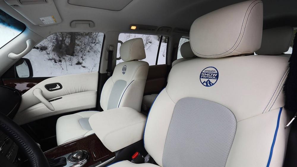 Nội thất xe có một chút thay đổi với bộ ghế ngồi mới và thêu logo Armada Snow Patrol