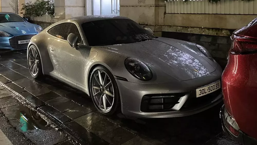 Chiếc xe Aston Martin DB9 Volante này hiện có màu xanh lam, nguyên bản xe mang màu xanh dương đậm, chủ nhân đã lột xác lại ngoại hình mới mẻ, cũng như nâng cấp công suất lên tận 600 mã lực. Dù đỗ ngay phía sau chiếc xe Porsche 911 màu bạc, nhưng Aston Martin DB9 Volante cũng không hề bị lu mờ.
