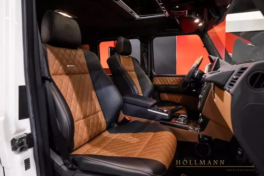 Trong bài viết hôm nay, chiếc xe dẫn động 6 bánh khổng lồ này được giới thiệu với màu sơn Designo Mystic White, sử dụng mâm xe hợp kim nhẹ 18 inch, bọc da Designo màu nâu và ốp sợi carbon. Xe được trang bị những tiện nghi như cửa sổ trời trượt, trần xe Alcantara, hệ thống giải trí cho hàng ghế sau, hai ghế thuyền trưởng riêng biệt ở phía sau, gói trang bị thép không gỉ, gói trang bị tiện nghi ghế ngồi và đèn viền nội thất.