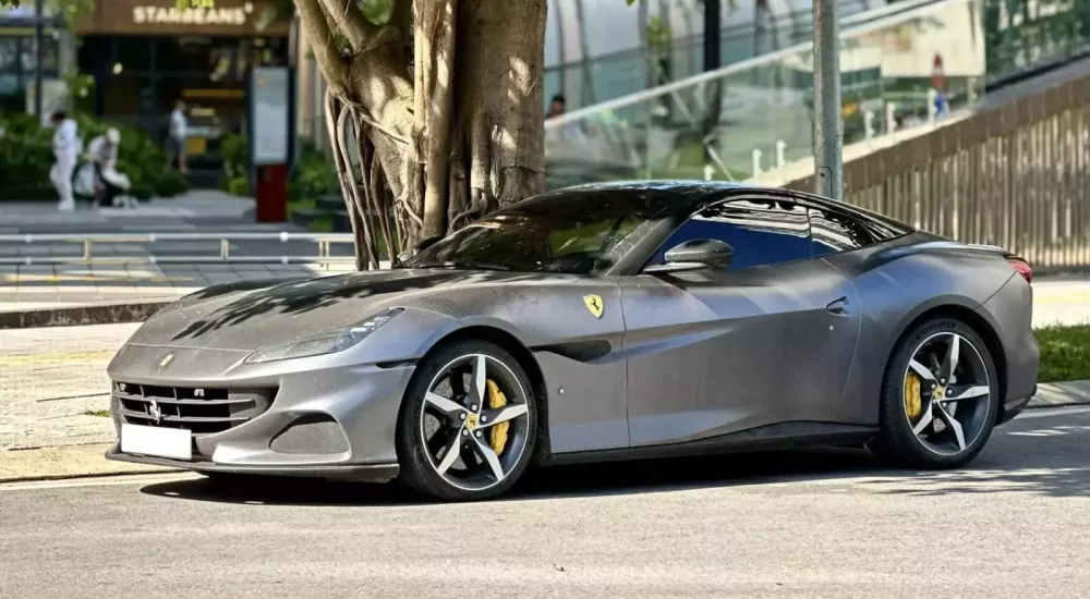 Một chiếc siêu xe mui trần Ferrari Portofino M mới bị bắt gặp trên đường phố Hà Nội với ngoại thất màu đen nhám rất ấn tượng, và thật bất ngờ là dòng xe này chỉ có đúng 2 chiếc được nhập về Việt Nam đều mang màu sơn đỏ truyền thống của hãng xe "ngựa chồm".