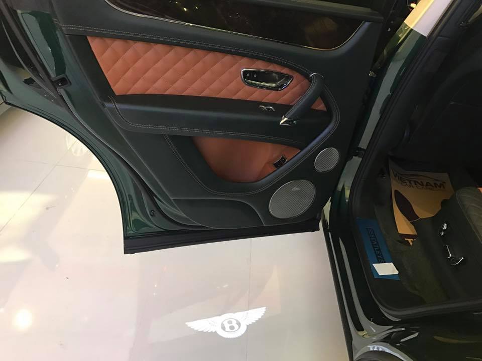 Logo Bentley phát sáng dưới nền gạch khi chủ nhân mở cửa chiếc Bentayga Onyx Edition này.
