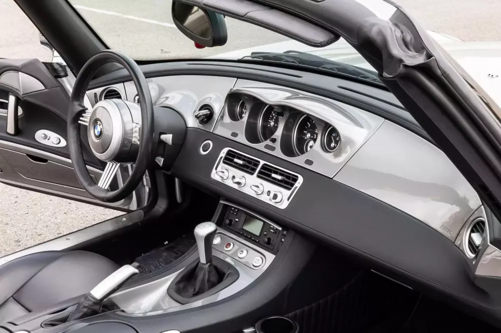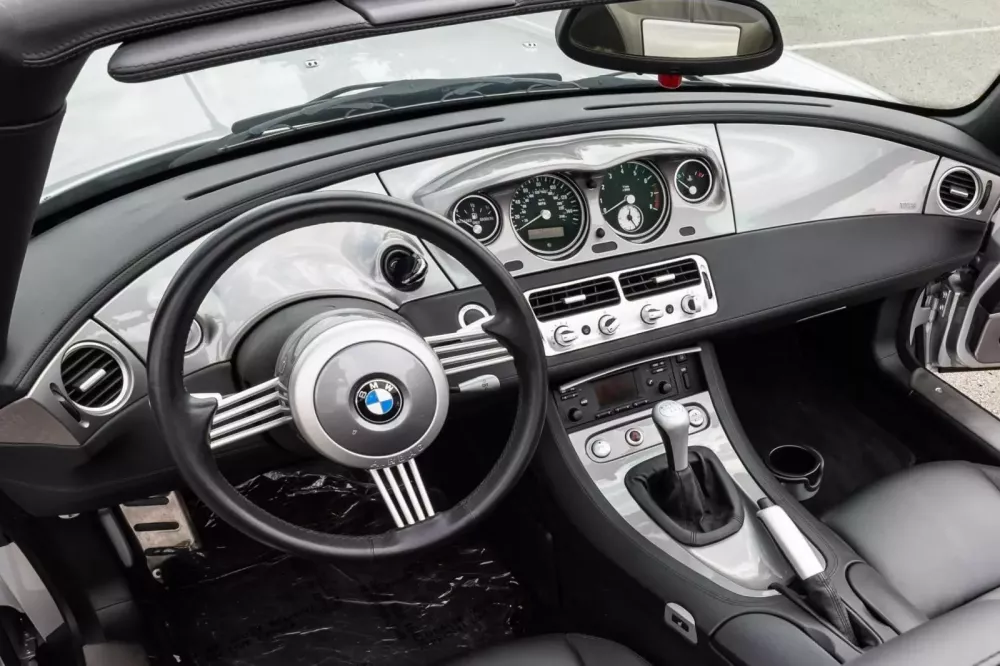 Chiếc BMW Z8 này sở hữu lớp sơn ngoại thất Titanium Silver Metallic, vành xe 18 inch, mui mềm chỉnh điện, mui cứng cùng màu thân xe và nội thất màu đen.