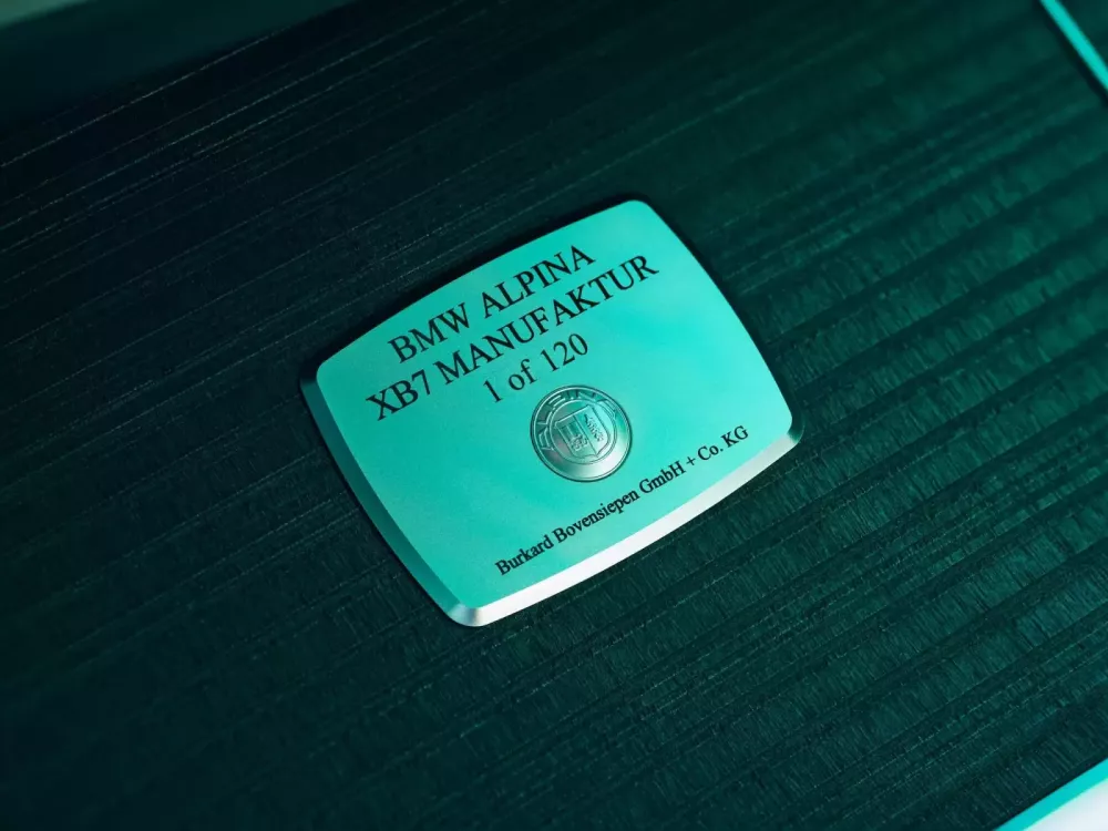 Huy hiệu XB7 Manufaktur độc đáo ở phía sau đánh dấu đây là phiên bản đặc biệt, trong khi bộ tem Alpina Deco-Set màu đen chạy dọc toàn bộ chiều dài xe. Logo Manufaktur được khắc laser trên mỗi cột B.