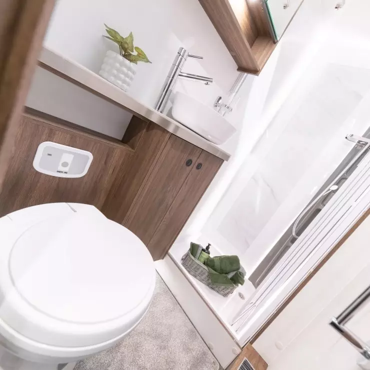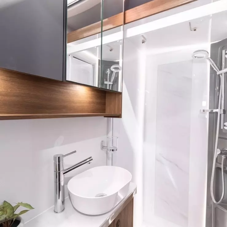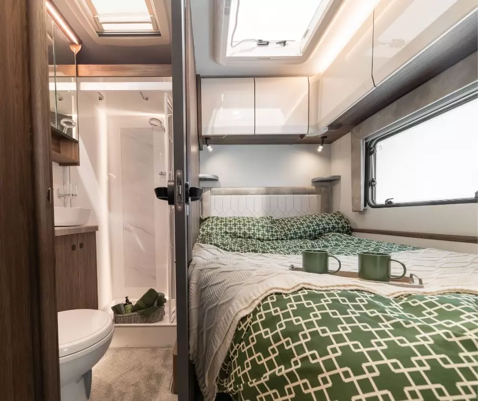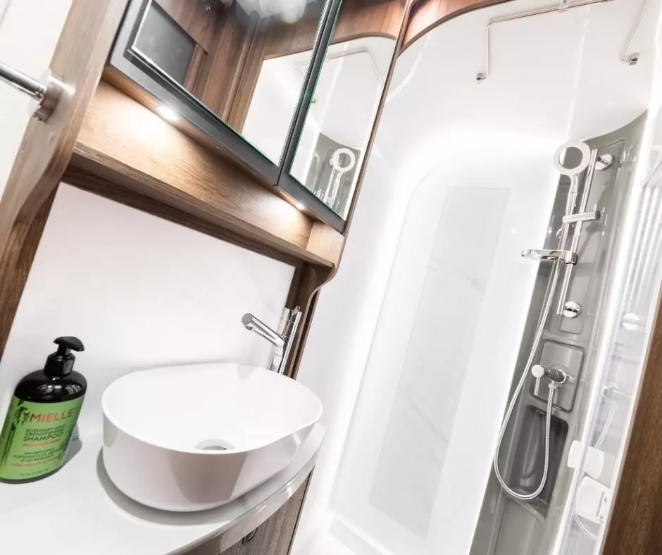 Phòng tắm bao gồm vòi sen riêng với đầu vòi sen Ecocamel và hệ thống thoát nước kép, bồn cầu Thetford có thể xoay, bồn rửa mặt và nhiều không gian lưu trữ. Trong khi đó, F-4S rất phù hợp cho những du khách thích giường đơn hoặc gặp khó khăn về khả năng di chuyển.