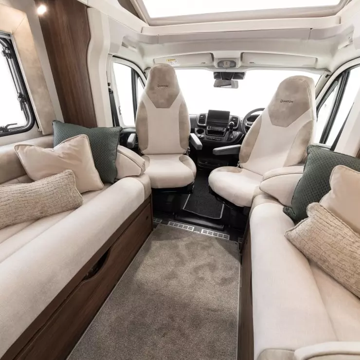 Thêm vào đó, các ghế sofa có thể chuyển đổi thành một giường đôi rộng rãi. Với cấu hình thông minh này, Quantum rất lý tưởng cho các cặp đôi yêu thích du lịch muốn tận hưởng sự thoải mái như ở nhà, nhưng chúng cũng có thể phù hợp với các gia đình nhỏ.