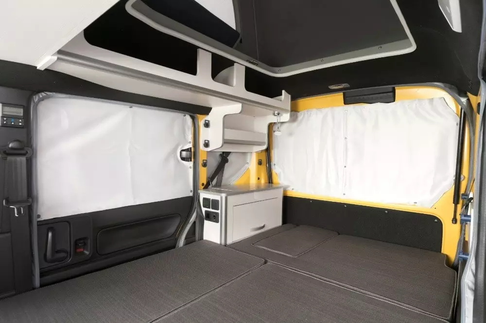 Về cơ bản, Racco vẫn đáp ứng đầy đủ các yêu cầu của một chiếc Kei Car, với chiều dài 3.395 mm, rộng 1.475 mm, cao 1.800 mm, và trong không gian đó, có thể chứa tối đa bốn hành khách. Hai cửa trước mở theo kiểu truyền thống, hướng về phía trước, nhưng đối với hành khách phía sau, hai cửa trượt được bố trí. Hãy tưởng tượng nó như một chiếc minivan. Tất cả nằm trên mâm xe 13 inch.