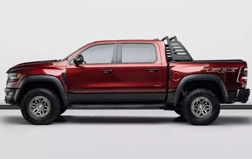 Bạn nên biết rằng màu sơn ngoại thất Delmonico Red là 1 trong 3 màu sơn độc đáo có sẵn cho mẫu xe này, 2 màu còn lại là Harvest Sunrise và Night Edge Blue. Xe cũng được trang bị mâm xe có khả năng khóa lốp với lớp phủ Satin Titanium, tấm chắn đặc biệt bên trong, logo TRX trên lưng ghế, logo TRX Satin Titanium ở phía hành khách và các chi tiết ốp cửa bằng da lộn Triaxle.