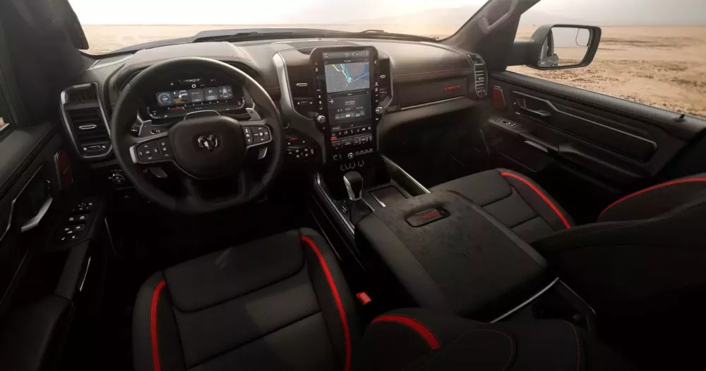 Bên trong cabin, RAM xóa nhòa ranh giới giữa sức mạnh và sự sang trọng với các vật liệu mang lại cảm giác phù hợp hơn với một chiếc xe du lịch hạng sang hơn là một chiếc xe hiệu suất cao. Bảng điều khiển được bọc da Natura Plus với đường chỉ khâu màu đỏ tương phản, và ghế ngồi có chức năng sưởi ấm, thông gió và massage cho người ngồi hàng ghế trước.