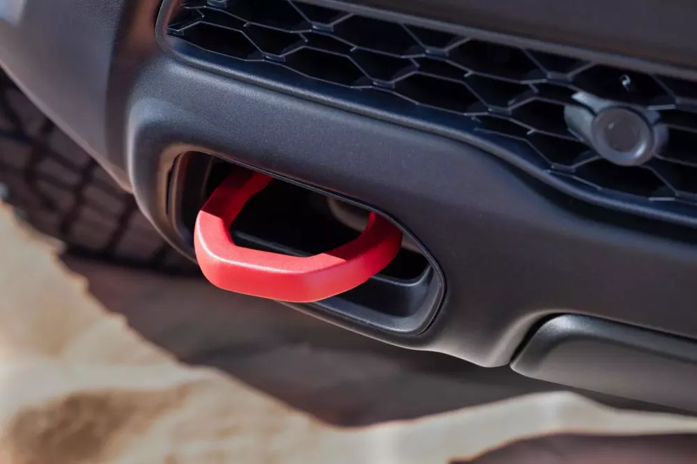 Chiếc TRX mới không chỉ cao mà còn rộng – cao hơn 2 inch và rộng hơn 8 inch so với một chiếc Ram 1500 tiêu chuẩn, nhờ vào các vòm bánh xe bằng vật liệu composite.