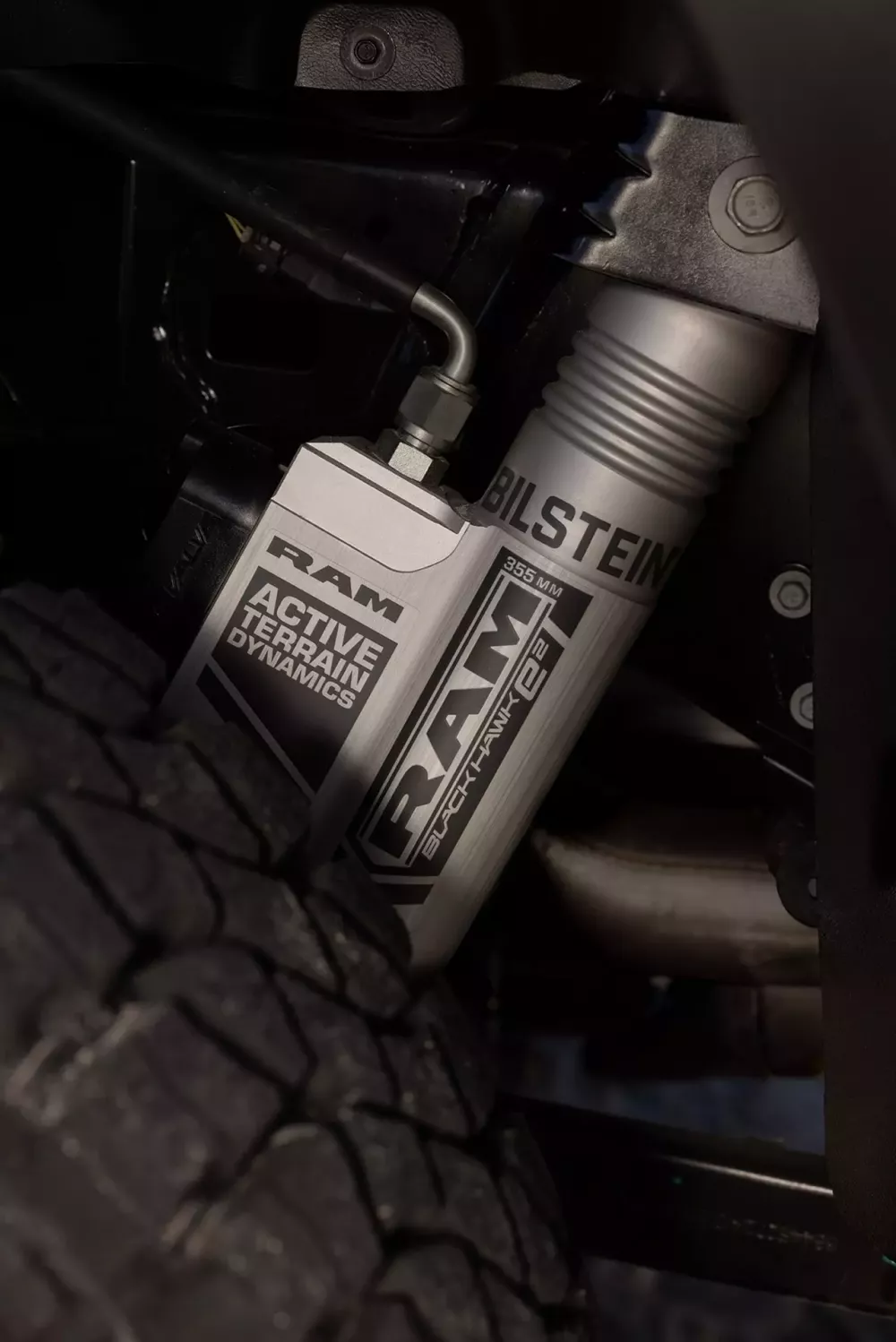 Chiếc RAM 1500 SRT TRX 2027 không chỉ đơn thuần là trang bị động cơ mạnh mẽ hơn mà còn thoải mái và phong cách, bởi vì được trang bị hệ thống giảm xóc hiệu suất cao thích ứng Bilstein Black Hawk e2 thế hệ thứ hai. Bộ giảm xóc này có vỏ nhôm cứng nguyên khối và van tỷ lệ điện tử kép (DEPV) điều chỉnh độc lập lực nén và lực đàn hồi.
