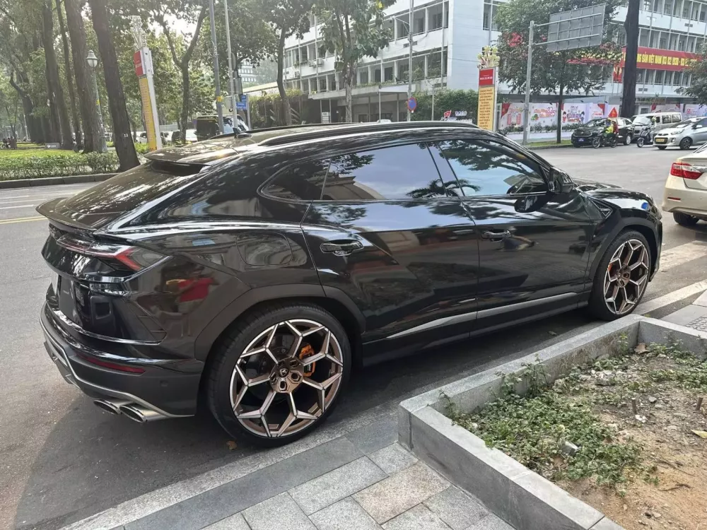 Theo người bán, chiếc siêu SUV Lamborghini Urus này thuộc đời 2019, tức đã 6 năm tại Việt Nam, nhưng trung bình mỗi năm lăn bánh chỉ hơn có 1.600 km, ngoại thất xe màu đen, đi kèm bộ mâm 5 chấu kích thước 23 inch rất đẹp.
