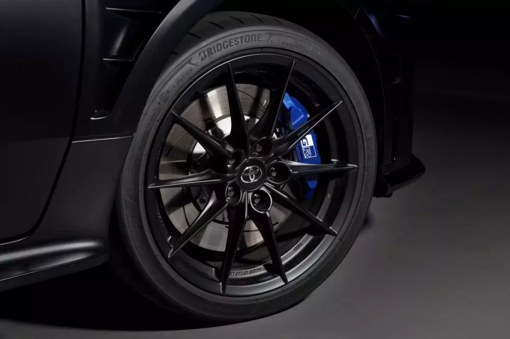 Bạn nghĩ rằng những thay đổi chỉ dừng lại ở đây? Thực ra thì không, bởi vì Toyota GR Yaris Sebastien Ogier Edition mới còn sở hữu lớp sơn ngoại thất độc quyền mang tên Black Gravite. Bộ mâm xe được sơn đen mờ, kết hợp với kẹp phanh màu xanh dương.