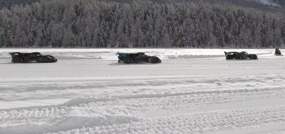 Hiện chưa có thông tin về người cầm lái chiếc Bolide tuần này ở St. Moritz, nhưng việc chứng kiến ba chiếc xe trượt ngang trên băng quả là một câu chuyện đáng kể cho con cháu sau này. Về cơ bản, bạn đang chứng kiến hơn 15 triệu đô la trượt trên băng.