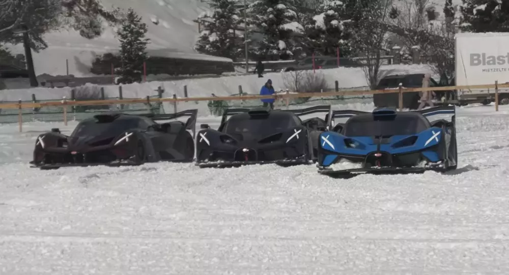Cảnh tượng hiếm gặp với 3 chiếc Bugatti Bolide trị giá 390 tỷ đồng đi "trượt tuyết"