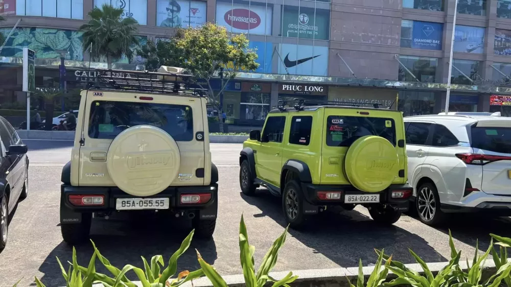 Hình ảnh về 1 cặp xe Suzuki Jimny ở tỉnh Ninh Thuận đã nhanh chóng nhận được sự quan tâm, khi 2 chủ xe xuống phố cùng nhau, không phải vì mang gói độ Brabus khủng, mà chỉ đơn giản, 2 xe có sở hữu biển số tứ quý rất đẹp mắt.