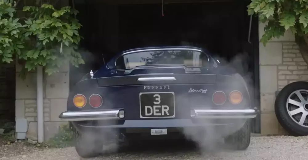 Giờ đây, cánh cửa của chính garage ấy mở ra, để lộ chính chiếc xe ấy một chiếc Dino 246 GT, có số khung 05286, sơn màu xanh Azzurro Blue với nội thất bọc da màu nâu. Nó sở hữu kiểu dáng khí động học, mũi xe dốc và bốn ống xả đặc trưng đã khiến Charles yêu thích nó ngay từ cái nhìn đầu tiên.