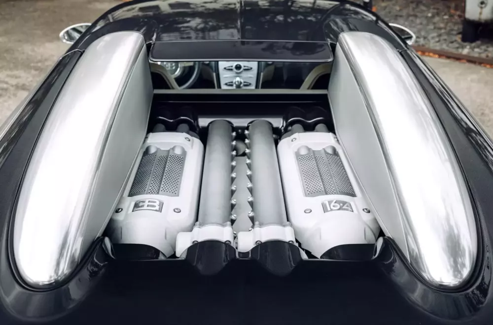 Ẩn sau vẻ ngoài tối giản là động cơ W16 8.0 lít, bốn bộ tăng áp mạnh mẽ, sản sinh công suất 1.001 ps, tương đương 987 mã lực. Sức mạnh khủng khiếp này giúp Pur Sang tăng tốc từ 0 đến 97 km/h chỉ trong 2,4 giây và đạt tốc độ tối đa 407 km/h.