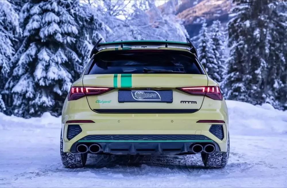 Về chiếc Audi S3 Sportback độ MTM trong bài, nó đã biến dãy Alps của Áo thành sàn diễn thời trang riêng, chẳng hạn như các phụ kiện ngoại thất, và màu vàng điểm xuyết nhiều điểm nhấn màu xanh lá cây.