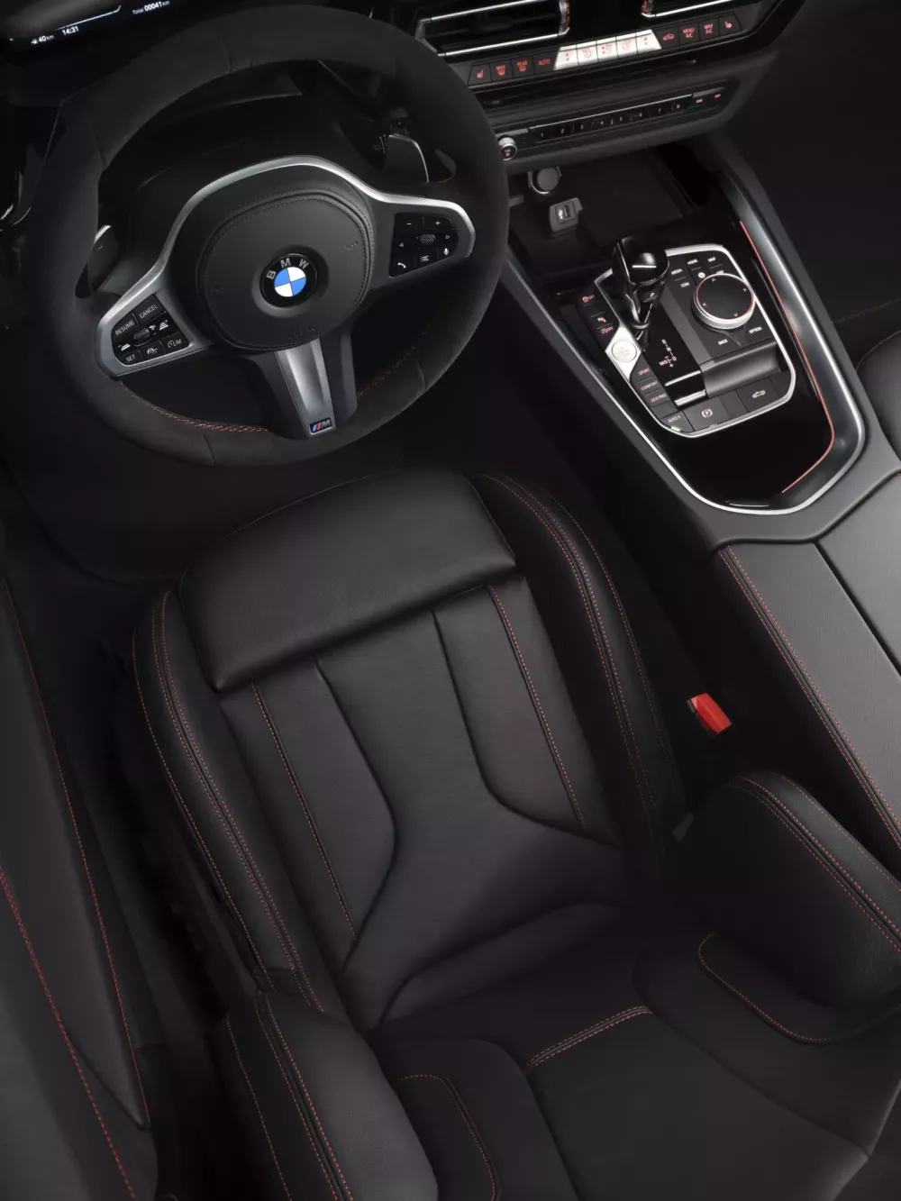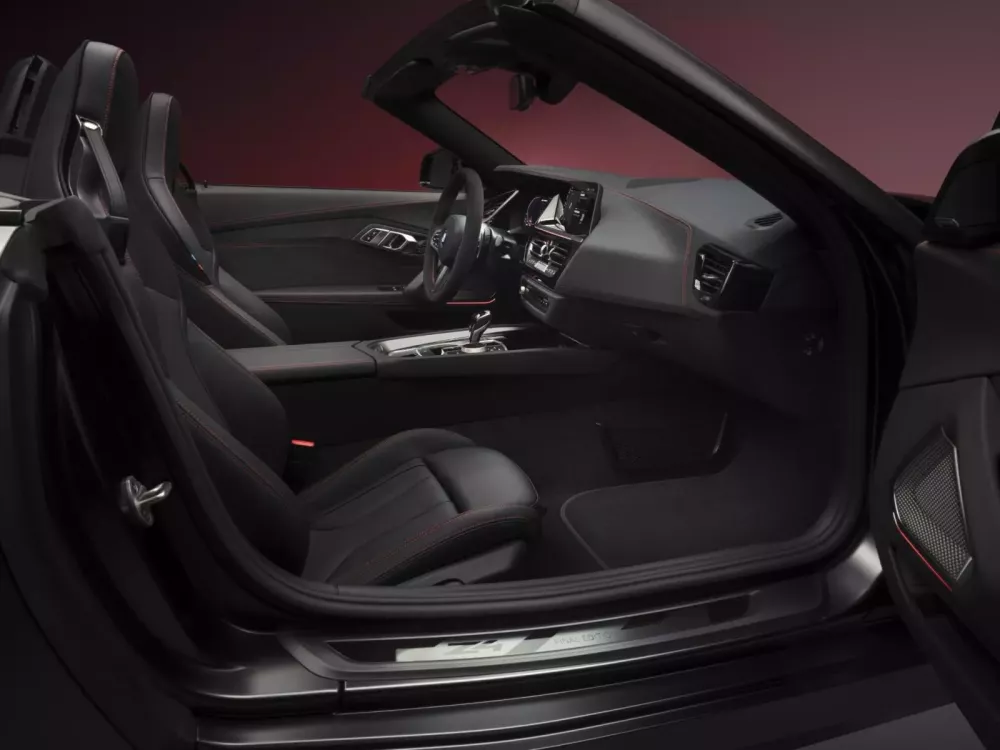 Bước vào bên trong, bạn sẽ thấy nhiều chi tiết màu đen hơn với các điểm nhấn màu đỏ tương phản. Được bọc da Alcantara và Vernasca, Z4 Final Edition còn tự hào sở hữu ghế lái và ghế hành khách M Sport, vô lăng M, các đường viền khắc họa tiết trên bệ cửa và nhiều đường chỉ khâu màu đỏ.