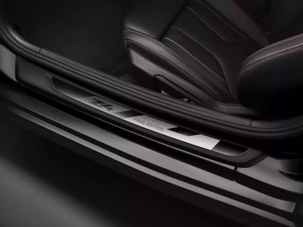 BMW chính thức chia tay dòng Z4 G29. Phiên bản Final Edition, đúng như tên gọi, là phiên bản đặc biệt giới hạn thời gian với thiết kế 2 tông màu, bao gồm lớp sơn Frozen Matte Black và kẹp phanh màu đỏ M Sport. Các chi tiết ốp ngoại thất Shadowline bóng bẩy của M cũng được trang bị.