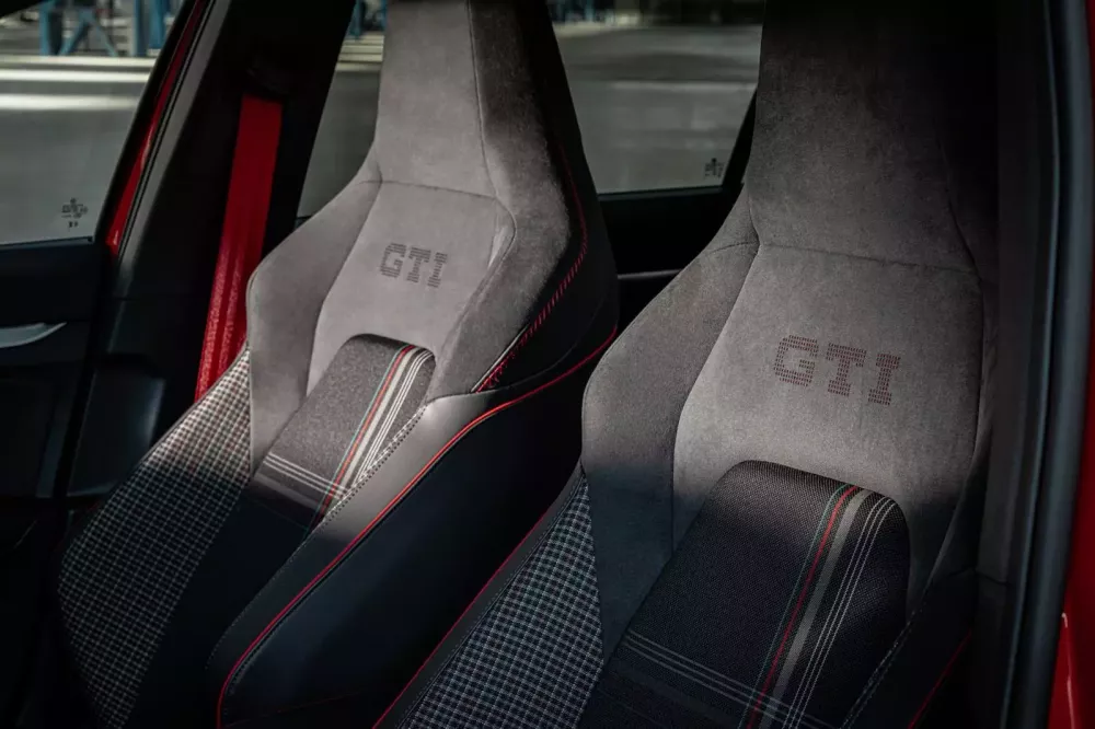 Ghế ngồi thể thao họa tiết kẻ caro với một vài chi tiết màu xanh lá cây đậm, vô lăng đa chức năng với logo "50 Years GTI", lẫy chuyển số tích hợp và dây đai an toàn màu đỏ là những điểm nhấn độc quyền khác.
