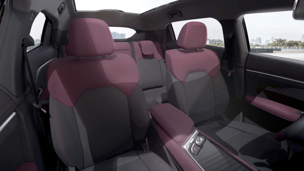 Bên trong khoang lái, vẻ hiện đại và cao cấp của VinFast VF6 tiếp tục được thể hiện qua thiết kế nội thất cao cấp phối hai tông màu Đen Đỏ. Chính giữa táp-lô là màn hình giải trí kích thước lớn, bên dưới là bảng điều khiển trung tâm tối giản. Vô lăng xe có thiết kế 3 chấu tích hợp cụm phím điều khiển ở hai bên, bảng đồng hồ của xe dường như được thiết kế hơi chìm xuống trên mặt táp lô, có vẻ chỉ hiển thị các thông số vận hành đơn giản của xe. Với ngoại hình lớn và thiết kế hai hàng ghế, dự kiến VinFast VF7 sẽ có khoang hành khách khá rộng rãi.