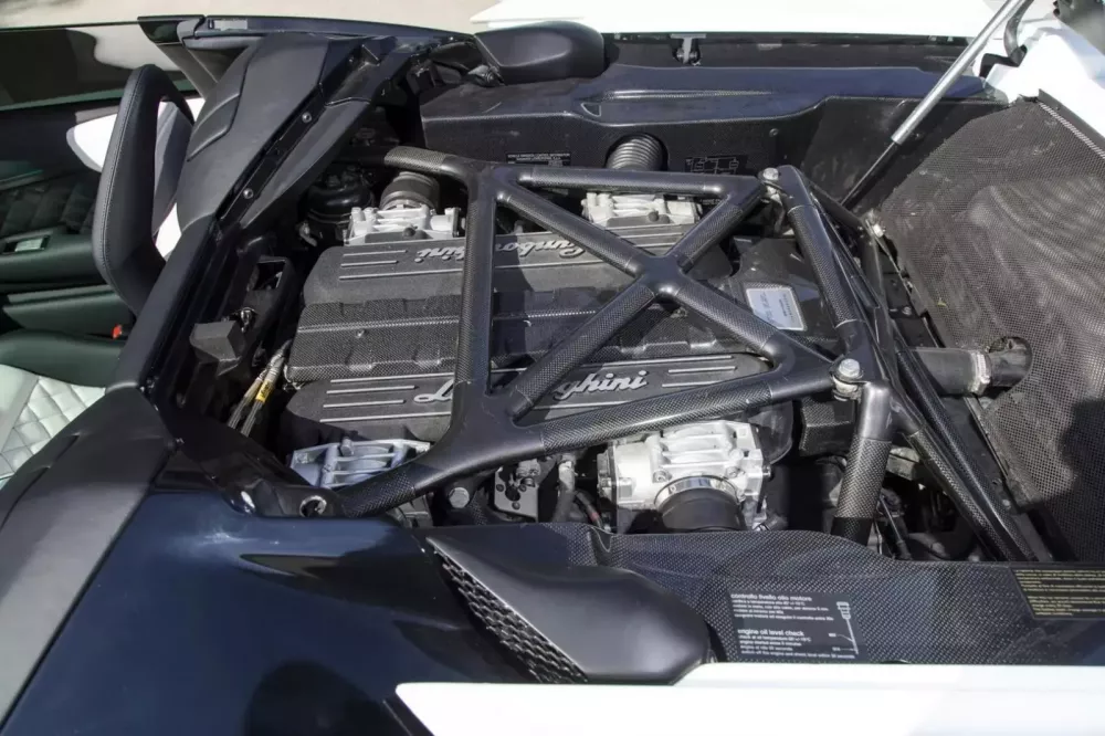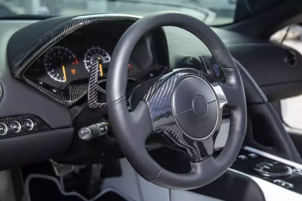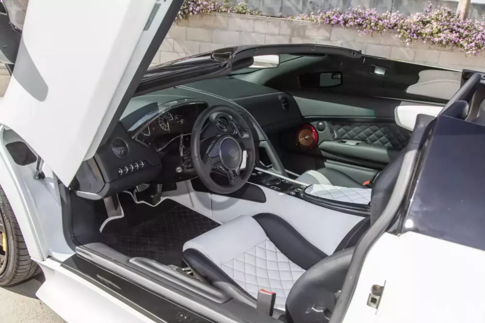 Các chi tiết trang trí bằng sợi carbon ở hầu hết mọi nơi, hệ thống giải trí màn hình cảm ứng Kenwood và loa Focal, điều hòa tự động, gương chiếu hậu gập điện, tựa vai gắn bên trong và vô lăng bọc da với lẫy chuyển số bằng sợi carbon gắn trên cột lái. Một điều thú vị là, bạn sẽ tìm thấy chữ ký của Valentino Balboni dưới nắp cốp trước của chiếc xe này.