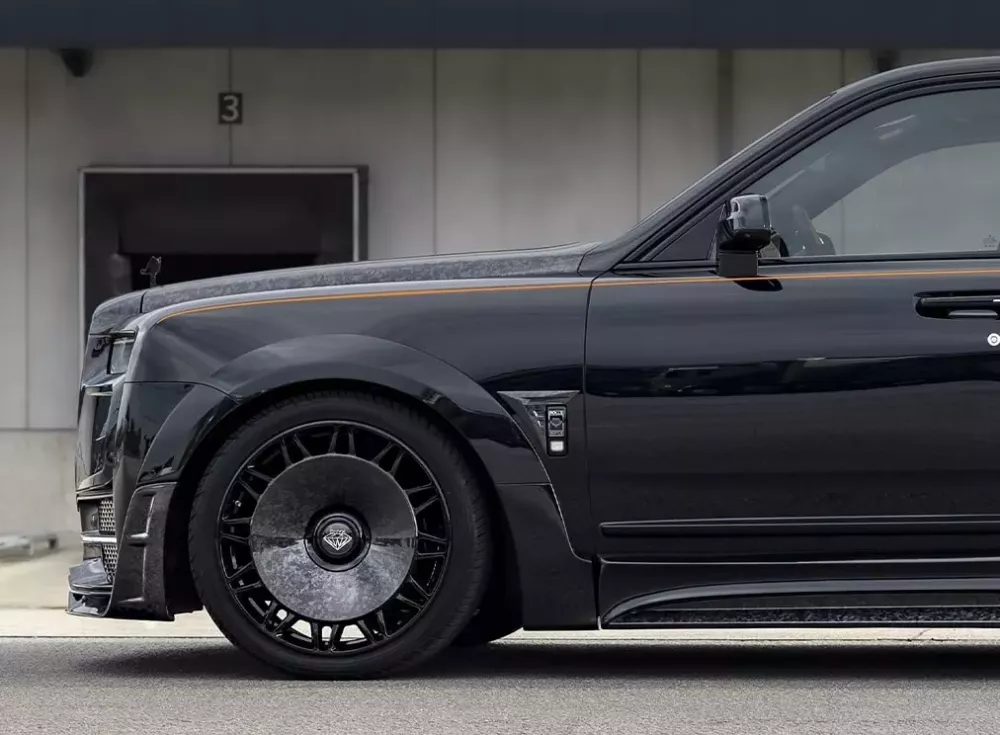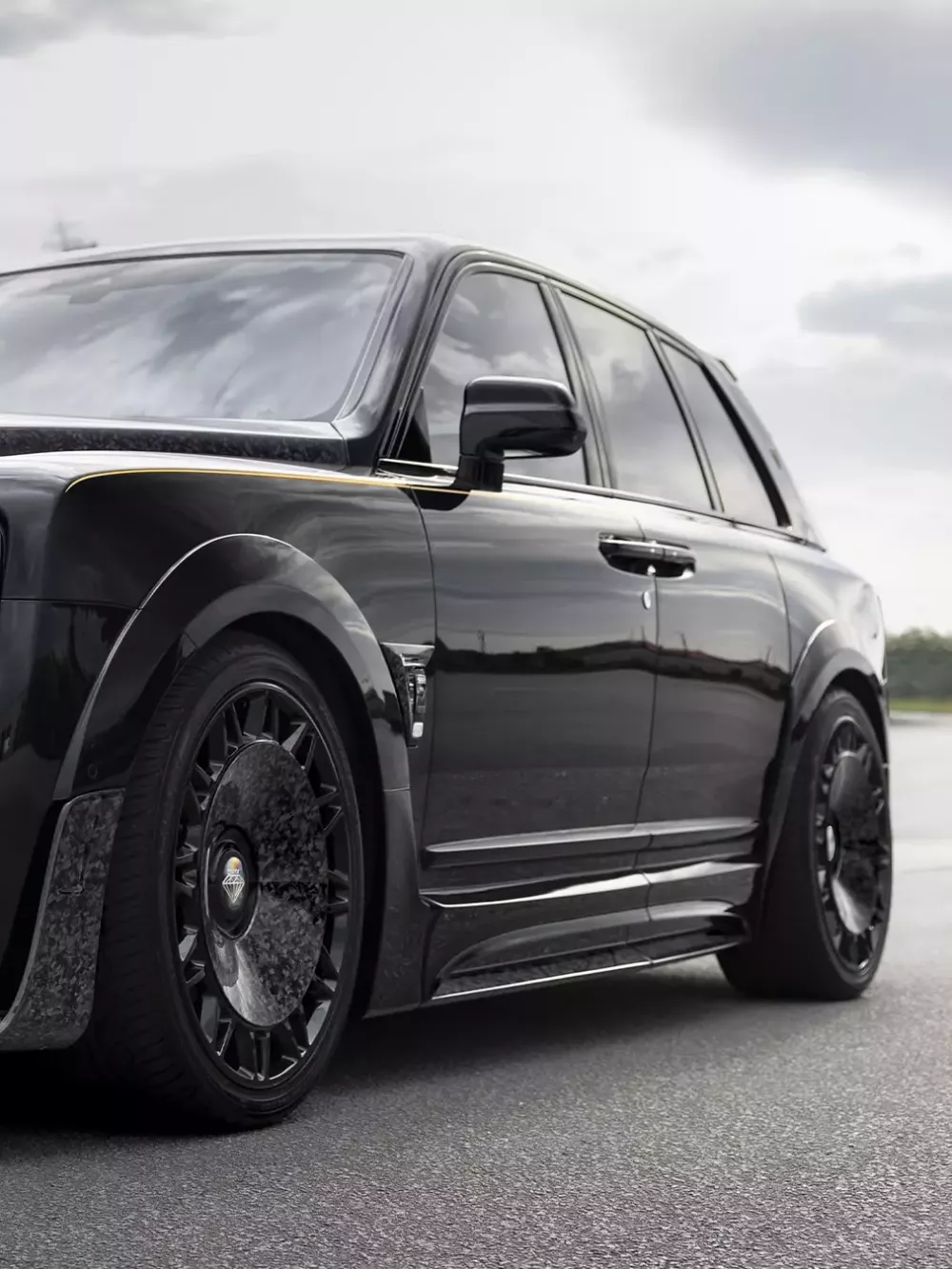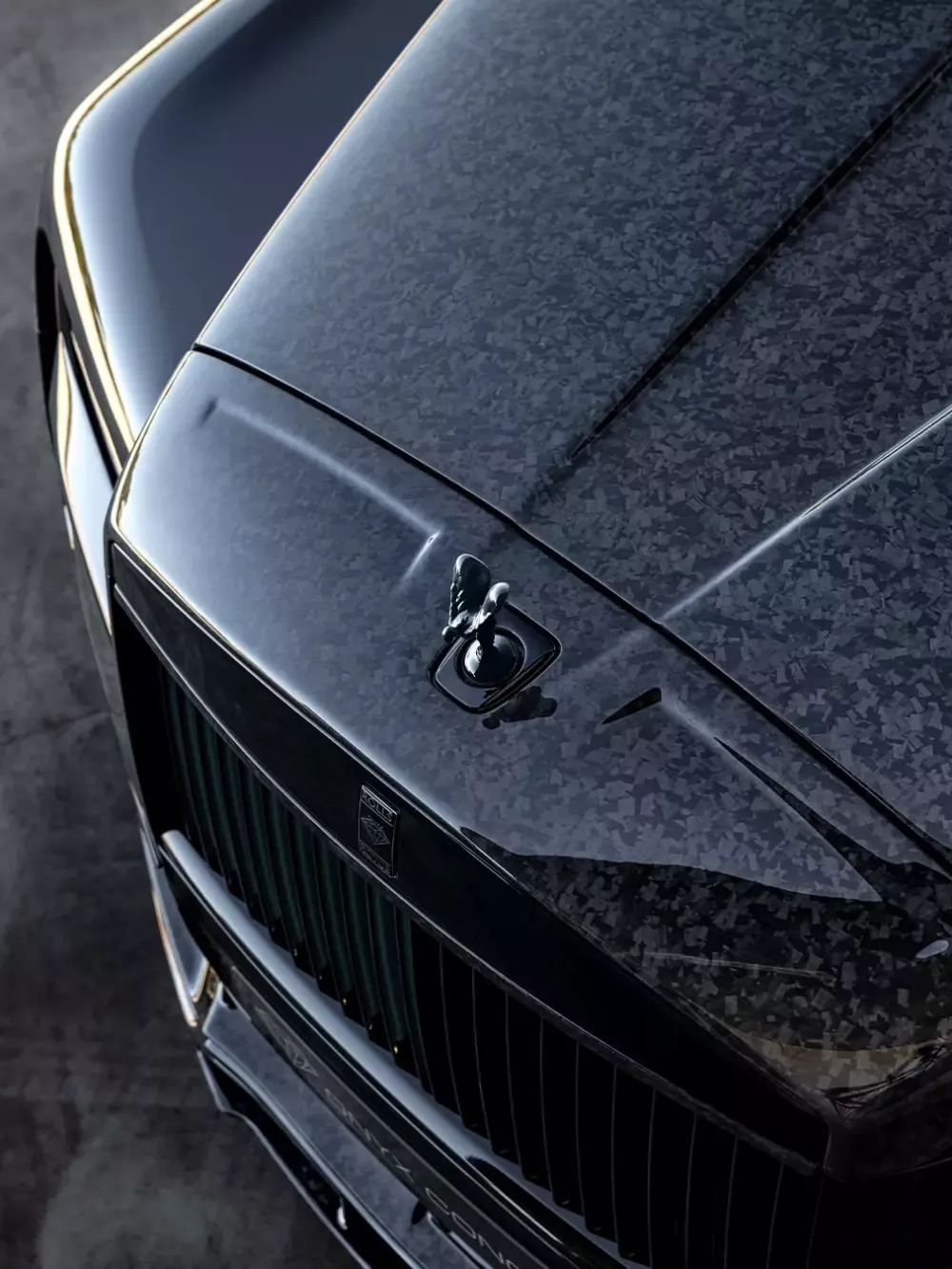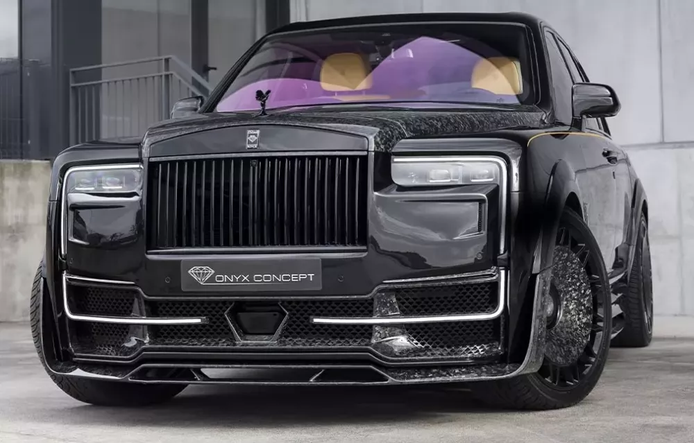 Chiếc Cullinan phiên bản Onyx, về cơ bản đã được khoác lên mình lớp vỏ bằng sợi carbon rèn cao cấp. Nắp ca-pô, bộ chia gió phía trước và cản trước, cũng như khung lưới tản nhiệt, đều được phủ bằng vật liệu độc đáo này. Và đó chưa phải là tất cả. Ốp sườn, cản sau, bộ khuếch tán gió và mâm xe cũng được xử lý bằng phương pháp rèn carbon.
