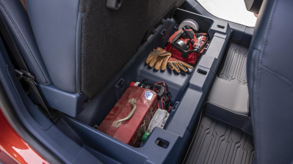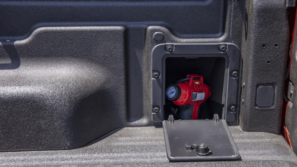 Cụ thể, hai bên vách thùng có sẵn các khe đặt thanh giằng, cho phép người dùng có thể sử dụng các thanh gỗ kích thước 2x4 (inch) hoặc 2x6 (inch) để phân tầng hoặc chia ngăn chứa hàng cho xe. Bên cạnh đó thùng xe còn có 2 móc chằng dây, 4 móc khóa dây và nhiều lỗ chờ đã được tarô sẵn để khách hàng có thể lắp thêm các phụ kiện và trang bị cho thùng xe. Cửa thùng xe cũng có khả năng mở nhiều cấp độ để tiện dụng hơn cho khách hàng.