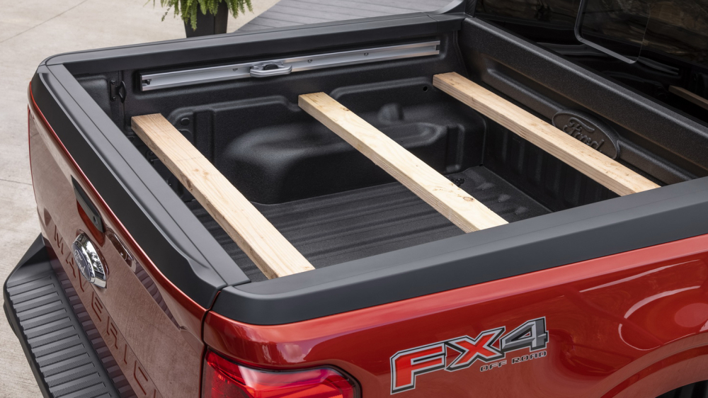 Là một chiếc bán tải, đương nhiên Ford Maverick không thể thiếu đi thùng xe. Ford đã trang bị cho Maverick một thùng xe đủ rộng với kích thước 1,4 mét, có thể mở rộng lên 1,8 mét khi mở cửa thùng xe. Dù con số này không mấy ấn tượng nhưng bù lại thùng xe Maverick lại có thiết kế và một số tiện ích hỗ trợ khá thông minh.