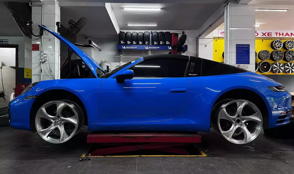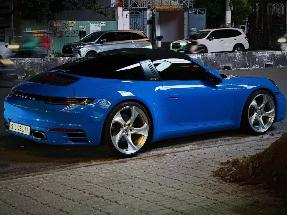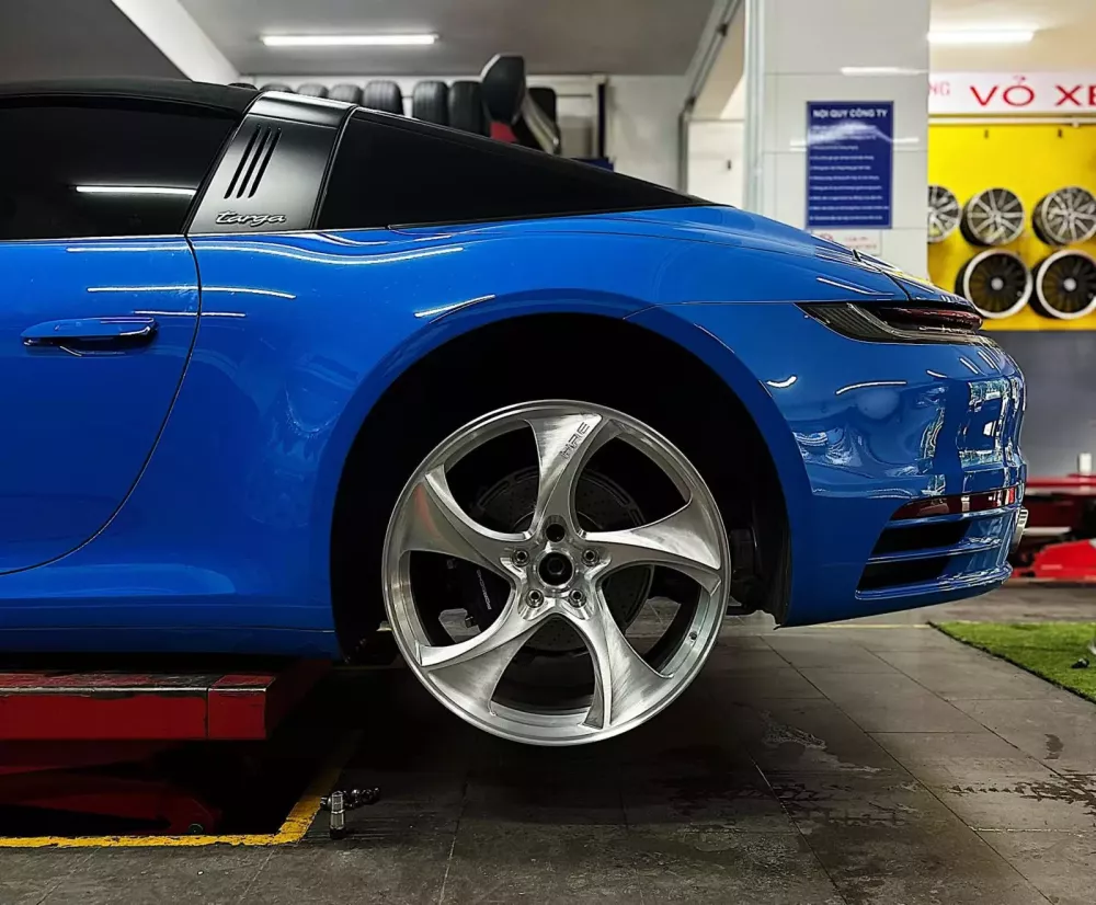 Chiếc xe Porsche 911 Targa 992 này cũng có màu sơn xanh dương na ná chiếc siêu xe giới hạn Lamborghini Aventador SV chỉ có đúng 1 xe tại Việt Nam. Xe có mui màu đen, và chủ nhân chọn lựa bộ mâm 5 chấu đơn xoắn kép mạ crôm sáng bóng. Theo tìm hiểu, bộ mâm Porsche 911 Targa 992 này của thương hiệu HRE, thiết kế rất khỏe khoắn.
