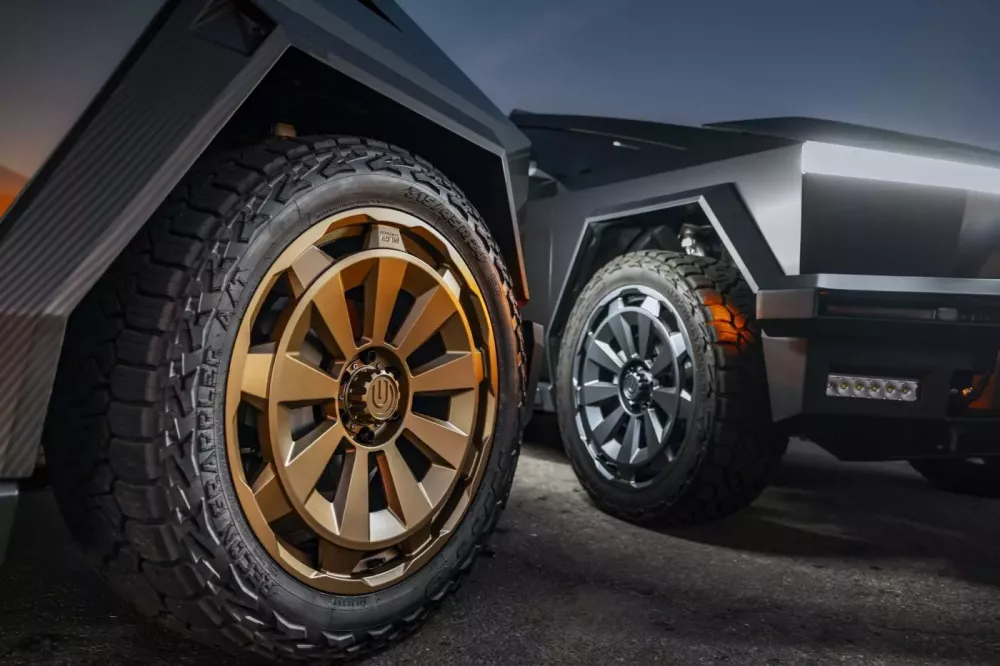 Lựa chọn lốp xe phụ thuộc vào sở thích của bạn: Nitto Recon Grappler 295/45R24 cho kiểu xe chú trọng hiệu quả hơn hoặc 315/45R24 mạnh mẽ hơn. CYBRNOVA có màu đen Satin, đồng Satin cho nét cá tính, hoặc Titan Satin cho phong cách tương lai hòa quyện hoàn hảo với thân xe của Cybertruck.
