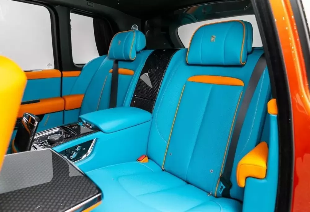 Đầu tiên chúng ta sẽ nói với lớp sơn cam sáng ở bên ngoài, màu áo này trên xe Rolls-Royce Cullinan 2025 cũng không có gì phải quá chê, tuy nhiên, tương phản với nội thất rất nhiều màu xanh nhạt và cam đã khiến cho màu xe và nội thất không ăn nhập gì với nhau, nhưng chẳng hiểu vì sao đại lý đến hãng không ngồi lại để có cách xử lý tốt hơn.