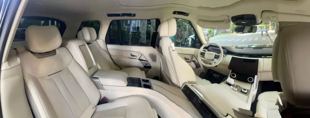 Ngoại thất chiếc xe Range Rover SV "lướt" đang được chào bán 23,2 tỷ đồng có màu đen, và nội thất mang tông màu kem, xe thuộc biến thể 4 chỗ ngồi.