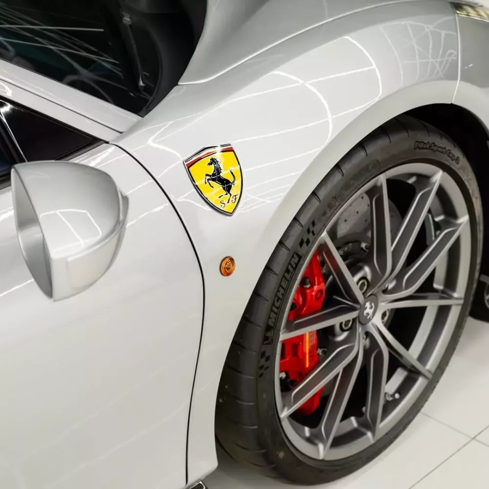 Được giới thiệu với thông số kỹ thuật hiếm có, siêu xe Ý sẵn sàng cho đường đua này sở hữu vẻ ngoài màu bạc và các sọc đua màu đen. Xe cũng có một vài điểm nhấn màu đen khác, chẳng hạn như cánh gió dưới cản trước, ốp hông và bộ khuếch tán gió sau, cùng nhiều chi tiết khác, và nằm trên bộ mâm hợp kim nan chữ V cũng màu xám xoay quanh kẹp phanh màu đỏ. Logo ngựa chồm được trang trí khắp xe, và bạn có thể không biết đây là tùy chọn, không phải miễn phí.
