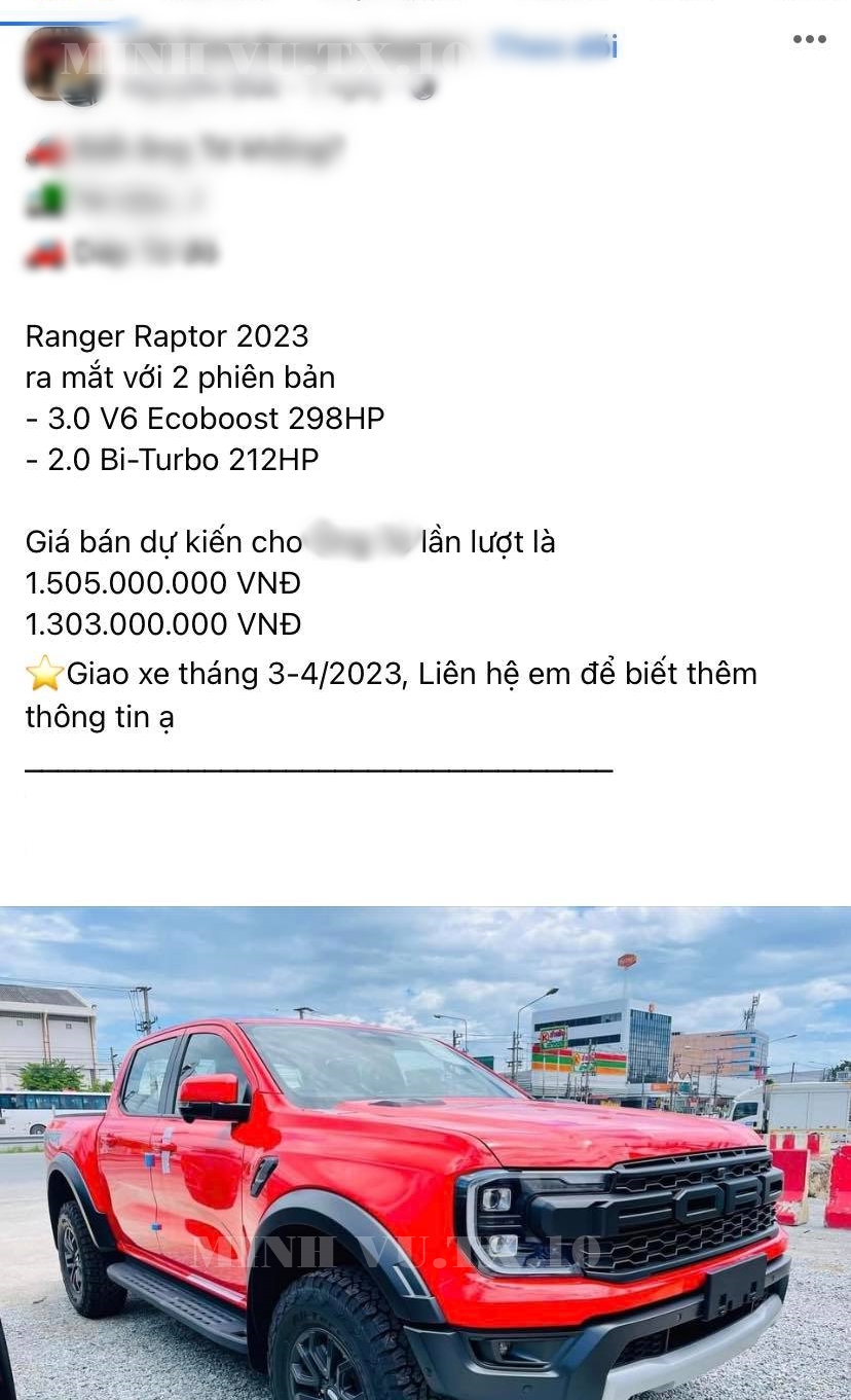 Trước đó, một số nhân viên tư vấn bán hàng của Ford tại Sài thành đã đưa ra mức cọc từ 20 triệu đến 50 triệu đồng, tùy theo độ thiện chí sẽ giúp khách hàng được ưu tiên sắp xếp trong nhóm được giao xe Ford Ranger Raptor 2023 đầu tiên.