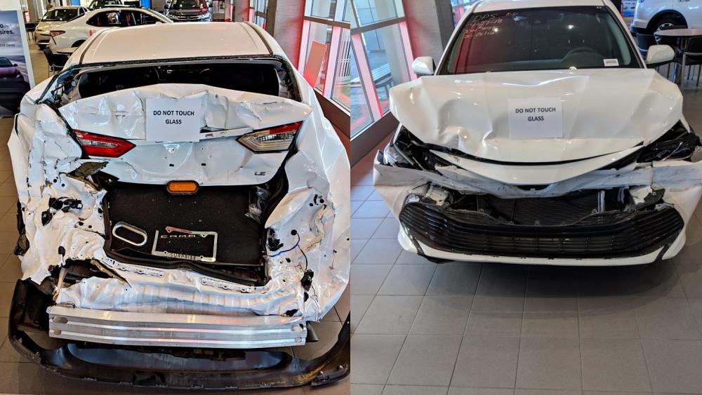 Đại lý Toyota trưng bày chiếc Camry 2018 nát bét để chứng minh sự an toàn