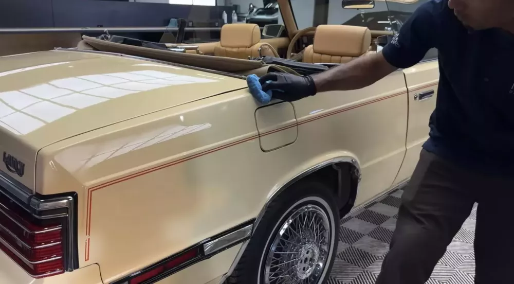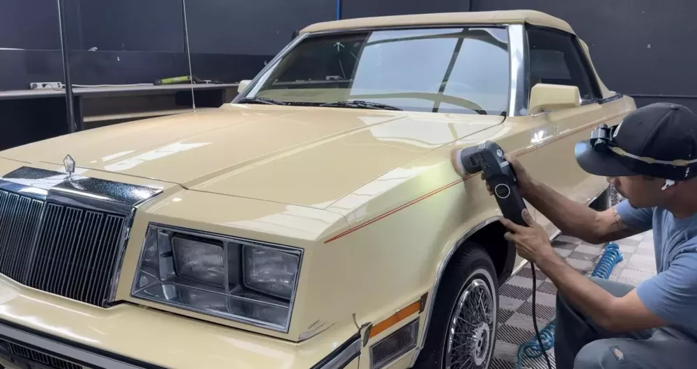 Chủ xe đã chi trả 800 đô la để mua xe nhưng sẵn sàng chi thêm 10.000 đô la để chiếc xe trông giống như ngày đầu tiên xuất xưởng. Ở bên ngoài, dấu vết của nhiều năm bị bỏ bê càng rõ nét hơn. Bụi bẩn và các vết ăn mòn bám đầy gần như khắp mọi tấm ốp. Nhưng ngay khi chiếc xe được rửa sạch sau nhiều thập kỷ, lớp sơn Light Mocha Tan của LeBaron bắt đầu xuất hiện trở lại.