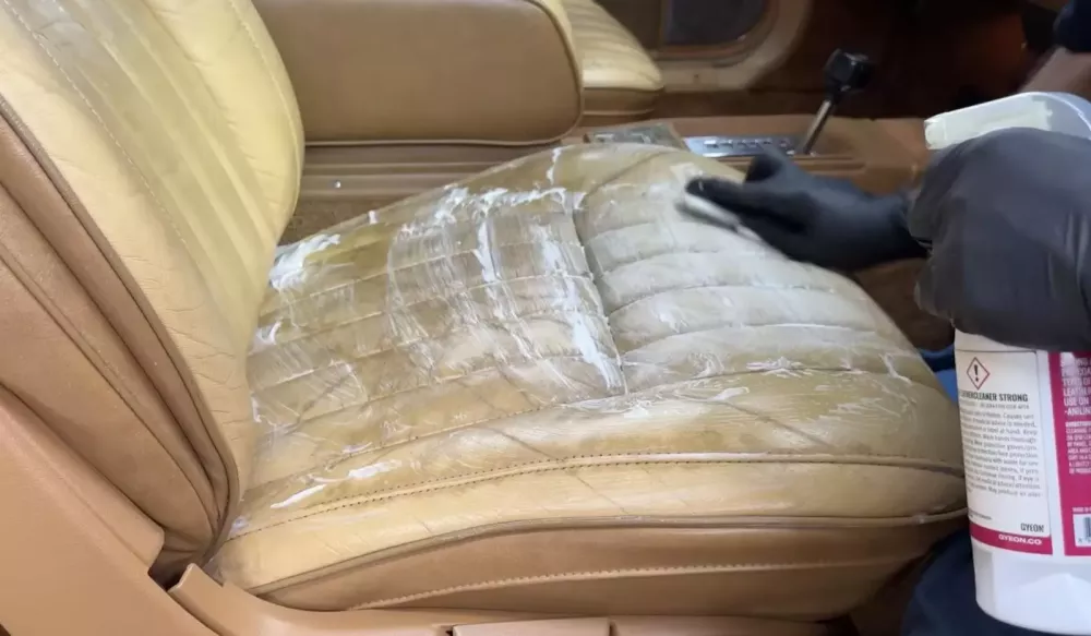 Bên trong, sự thay đổi cũng đáng kinh ngạc không kém. Ghế băng sau được tháo ra để tiếp cận lớp bụi bẩn tích tụ nhiều năm bên dưới. Mọi khe hở trên ghế bọc, bảng điều khiển và ốp cửa đều được chải, chà và hấp sạch.