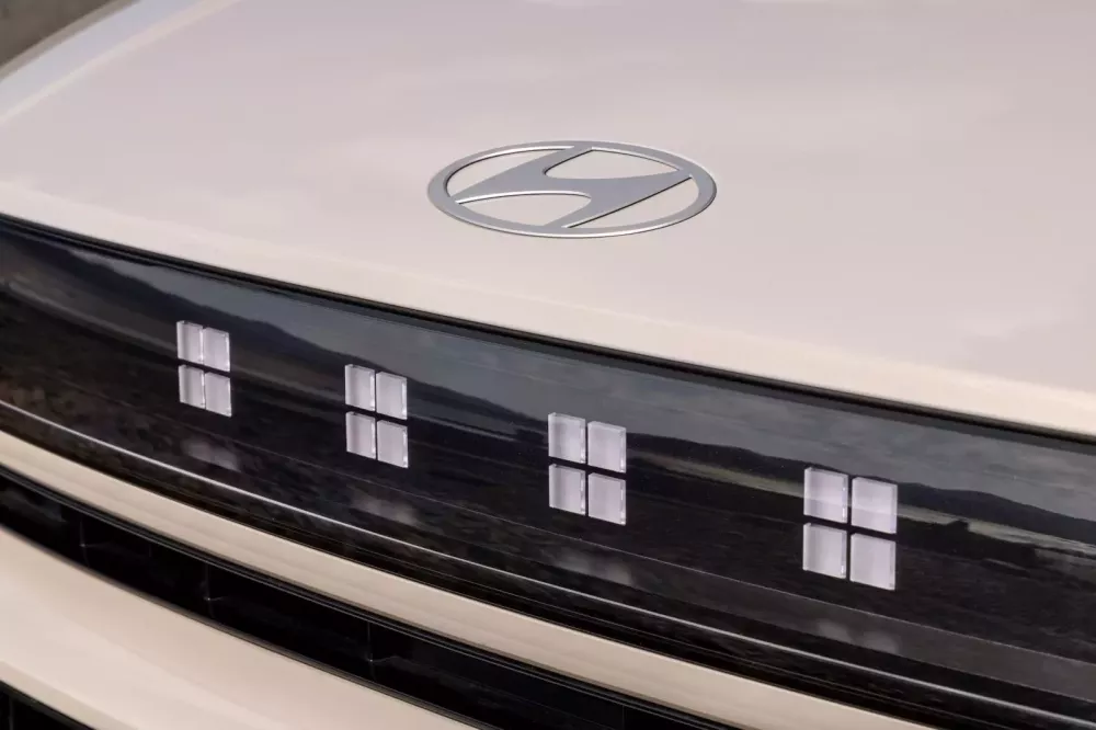 Đèn HTWO dành riêng cho FCEV và đèn chiếu sáng đặc trưng bốn chấm giúp NEXO dễ dàng nhận biết, đại diện cho thương hiệu tập trung vào hydro của Hyundai.
