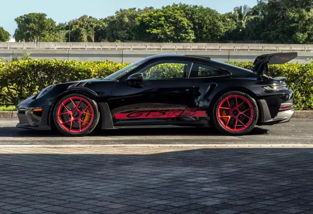 Chiếc xe Porsche 911 GT3 RS 992 này có màu đen và mâm đỏ, chủ nhân không lựa chọn thêm gói đắt đỏ Weissach Package cho xe. Theo tìm hiểu, cả 2 chiếc xe Porsche 911 GT3 RS 992 trắng và đen này dường như có cùng chủ với nhau.