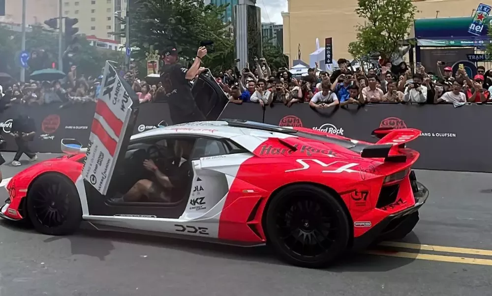 Dù vậy, cứ khi đến địa điểm nào có đông người dân đứng chờ và hò reo, D.D.E lại hết mình với những màn nẹt pô inh ỏi, vui hơn còn mở 2 cửa cắt kéo và đứng lên thành cửa, để quay lại những khoảnh khắc cực kỳ ấn tượng của hành trình siêu xe Gumball 3000 2024.
