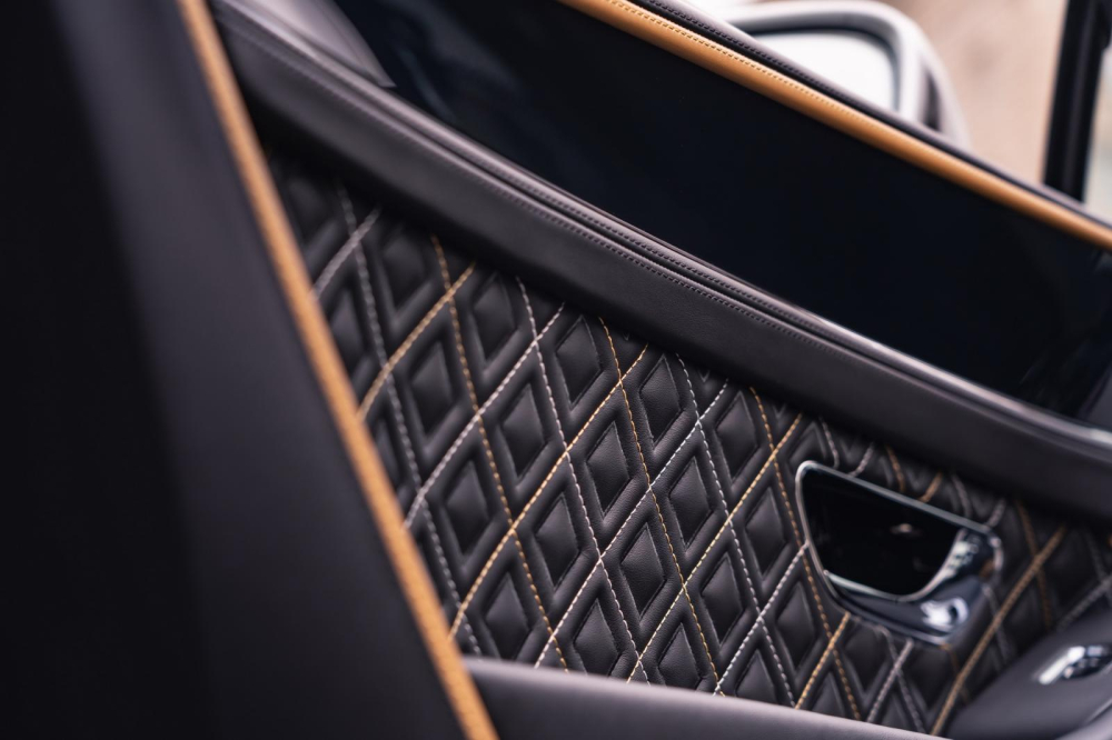 Tương tự, mặt bảng điều khiển trung tâm sử dụng tấm ốp có họa tiết kim cương đi kèm ốp gỗ óc chó màu đen và nẹp crôm bóng. Chi tiết ốp viền bóng trên đồng hồ Breitling cũng xuất hiện trên bảng đồng hồ kỹ thuật số của xe. Ngoài các chi tiết đặc biệt trên, khách hàng còn có thể lựa chọn các chi tiết ốp với 88 màu sắc khác nhau, có thể ăn nhập với nội thất và ngoại thất của xe.