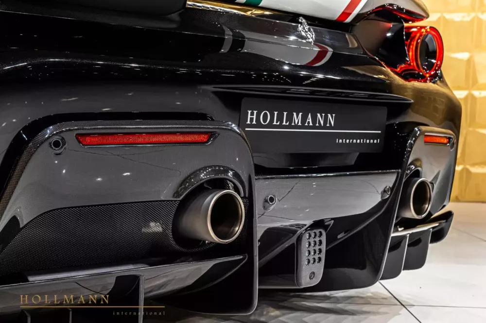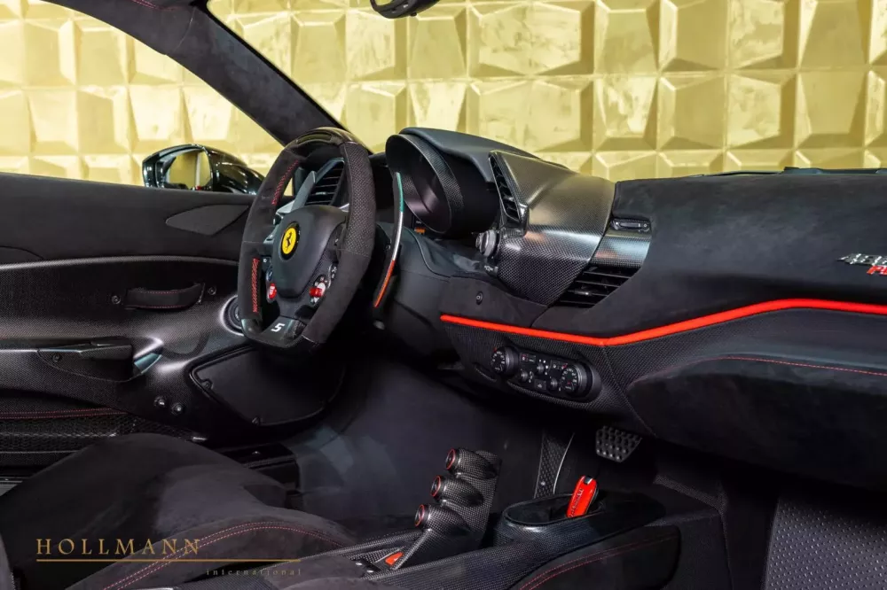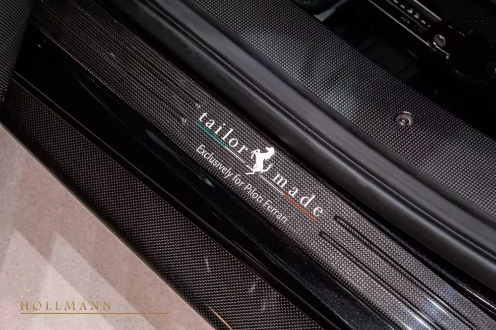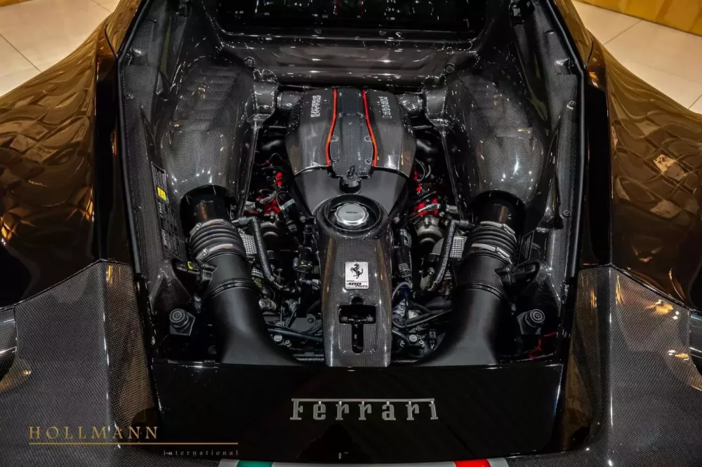 Xe được trưng bày với màu sơn Nero Daytona, nội thất Nero, vành carbon, ốp carbon, dây an toàn bốn điểm, đèn pha thích ứng, kẹp phanh màu đỏ, hệ thống nâng mũi, ống xả titan, cảm biến đỗ xe ở cả hai đầu, và một vài chi tiết nhỏ khác mà chủ sở hữu tương lai chắc chắn sẽ đánh giá cao.