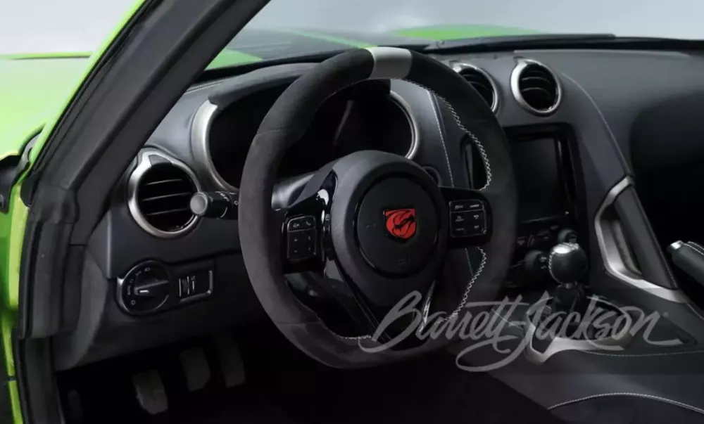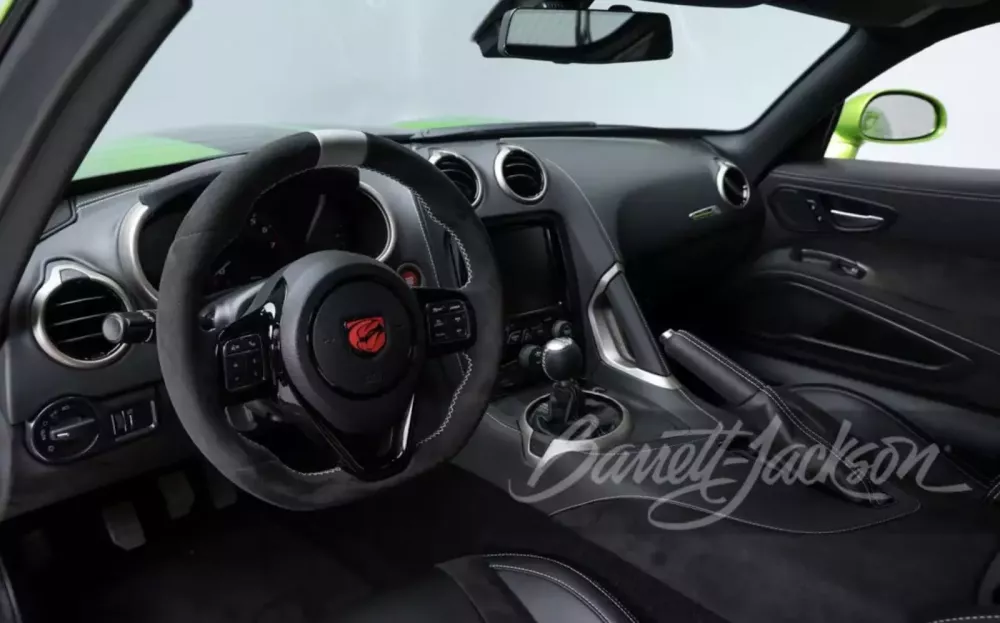 Nội thất cũng theo cùng một chủ đề: vừa lịch lãm vừa độc đáo. Huy hiệu Snakeskin được đánh số thứ tự trên bảng táp-lô khẳng định điều mà màu sắc đã ám chỉ: đây không phải là một chiếc Viper mà bạn có thể thấy hai lần. Vô lăng được bọc da màu đen với vạch 12 giờ màu xám, cũng như các tấm ốp cửa và bảng điều khiển dành riêng cho ACR.