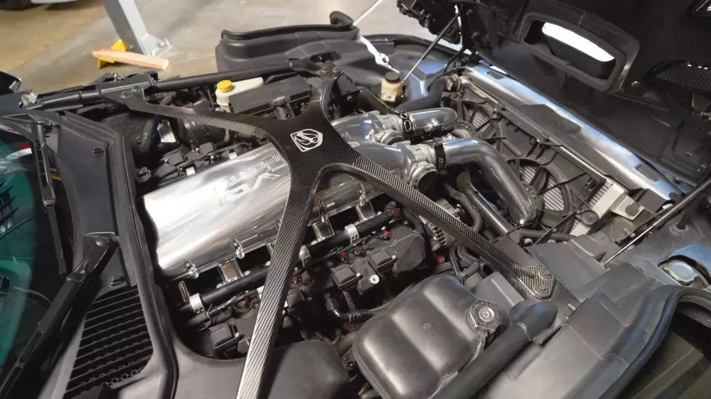 Chiếc xe vẫn sử dụng khối động cơ V10 8,4 lít nguyên bản, nhưng đã được gia cố mạnh mẽ để chịu được áp suất tăng áp lên đến bốn con số. Các cải tiến về động cơ bao gồm sàn khô và đầu xi-lanh vòng lửa để đảm bảo độ kín tối ưu, van titan và inconel, yên xe bằng đồng berili và trục khuỷu phôi thép - tất cả đều là những thành phần thiết yếu để duy trì độ tin cậy ở mức công suất khủng khiếp này.